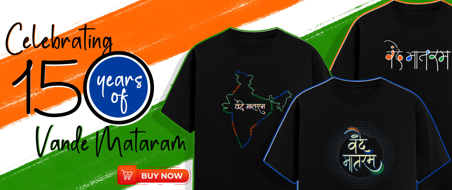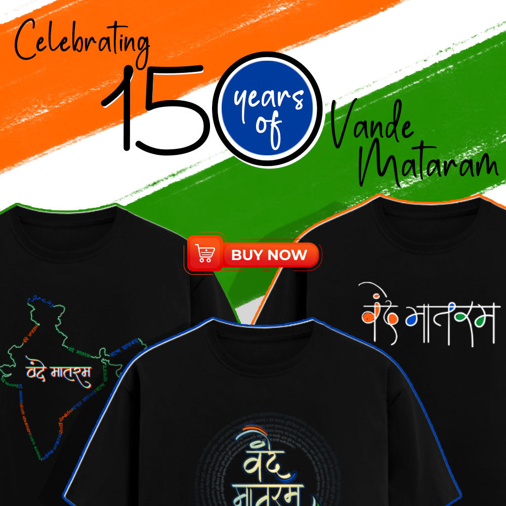 Celebrate 150 years of वंदे मातरम् with this elegant Devanagari typography tee. Wear it as your own tribute to the words that shaped a nation and continue to inspire generations.